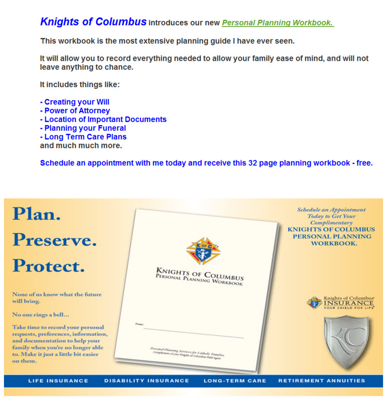 Knights of Columbus introduces our new Personal Planning Workbook.
